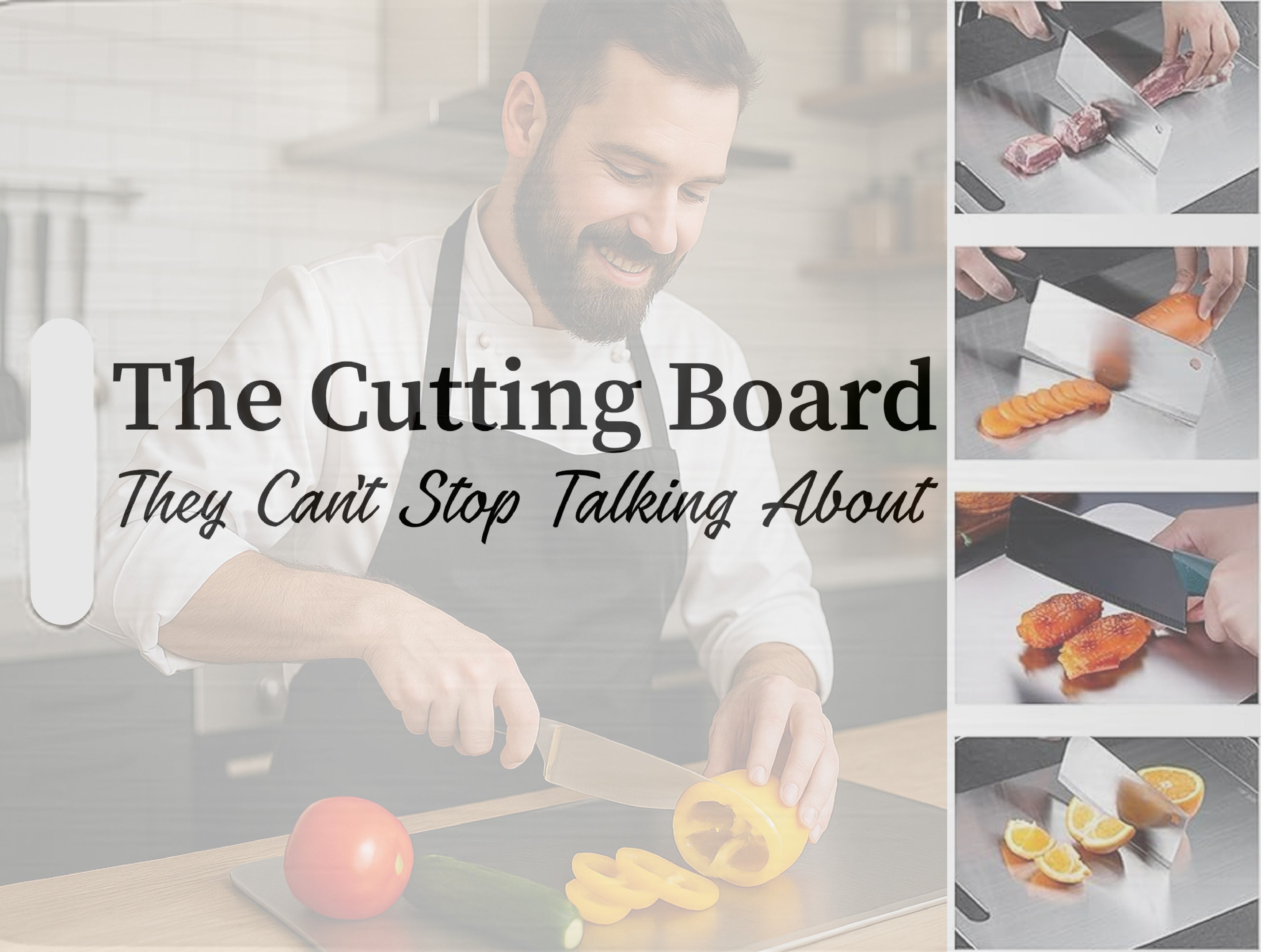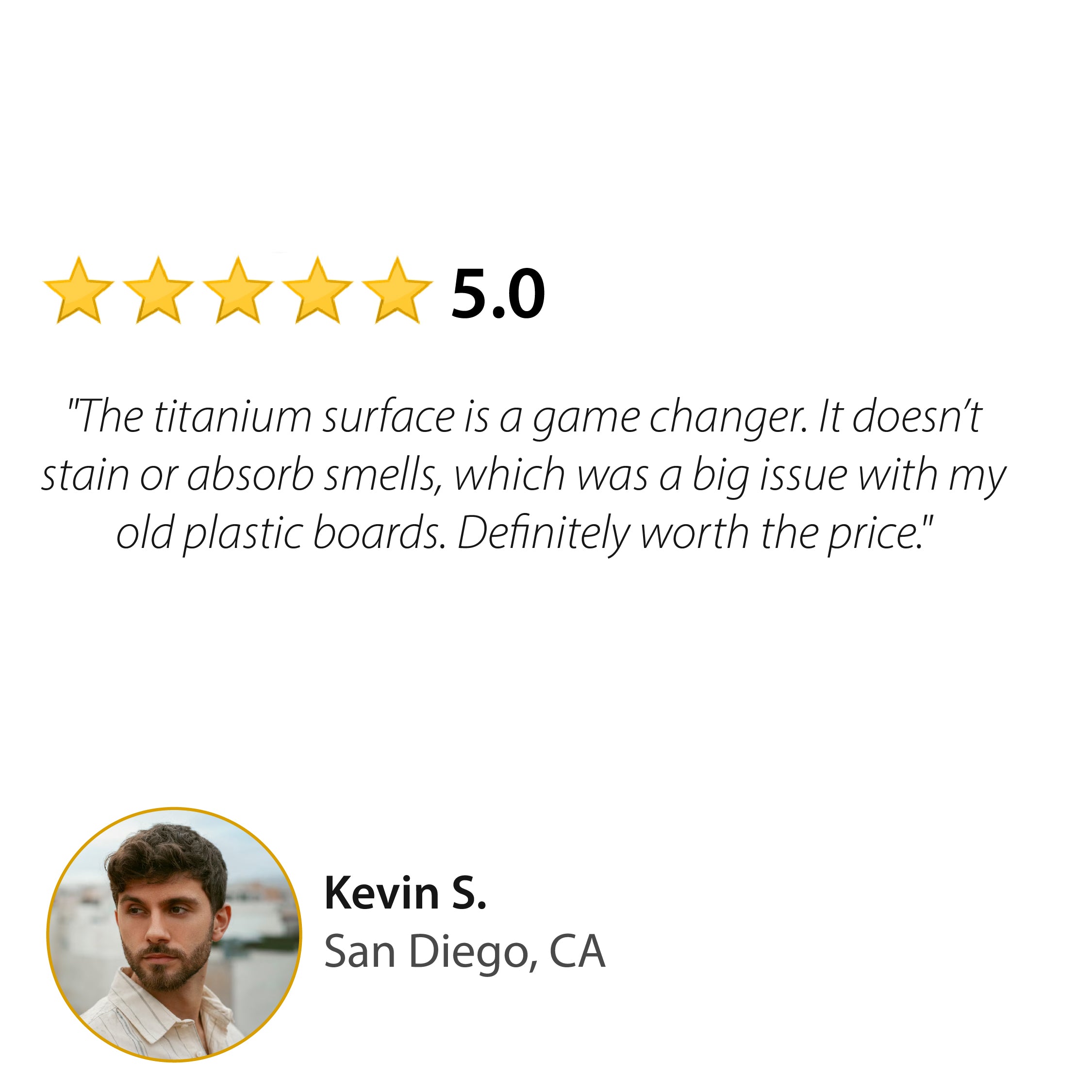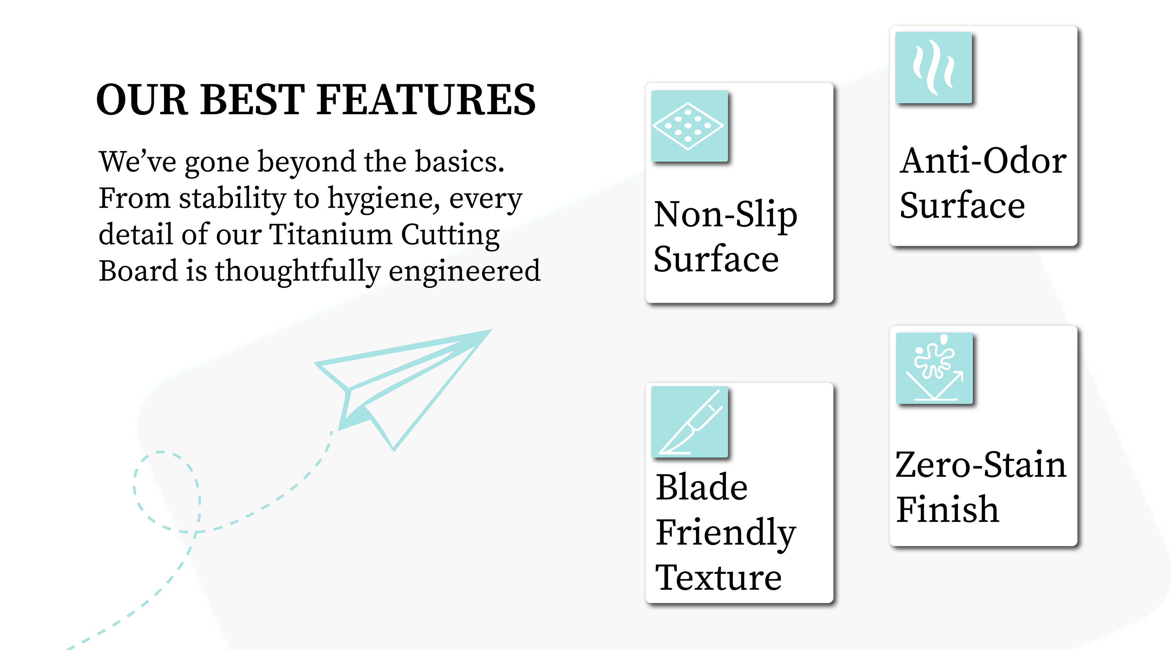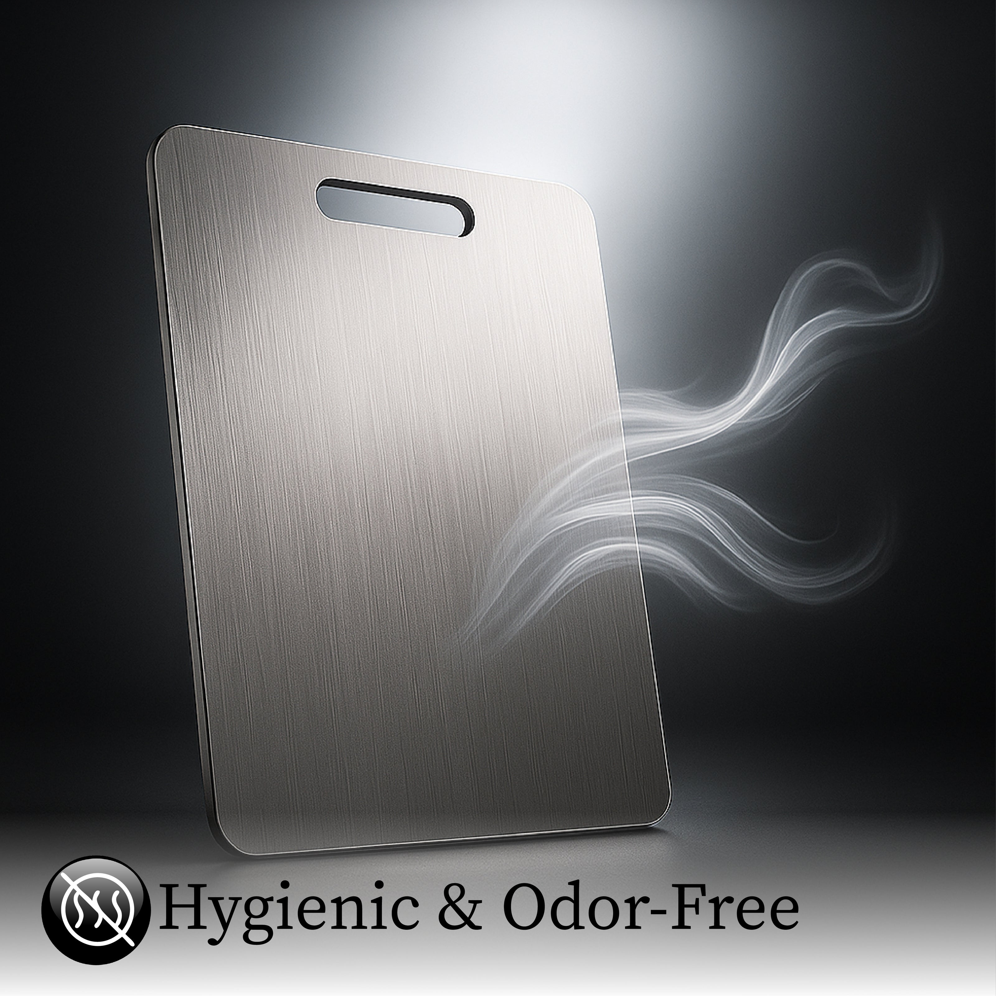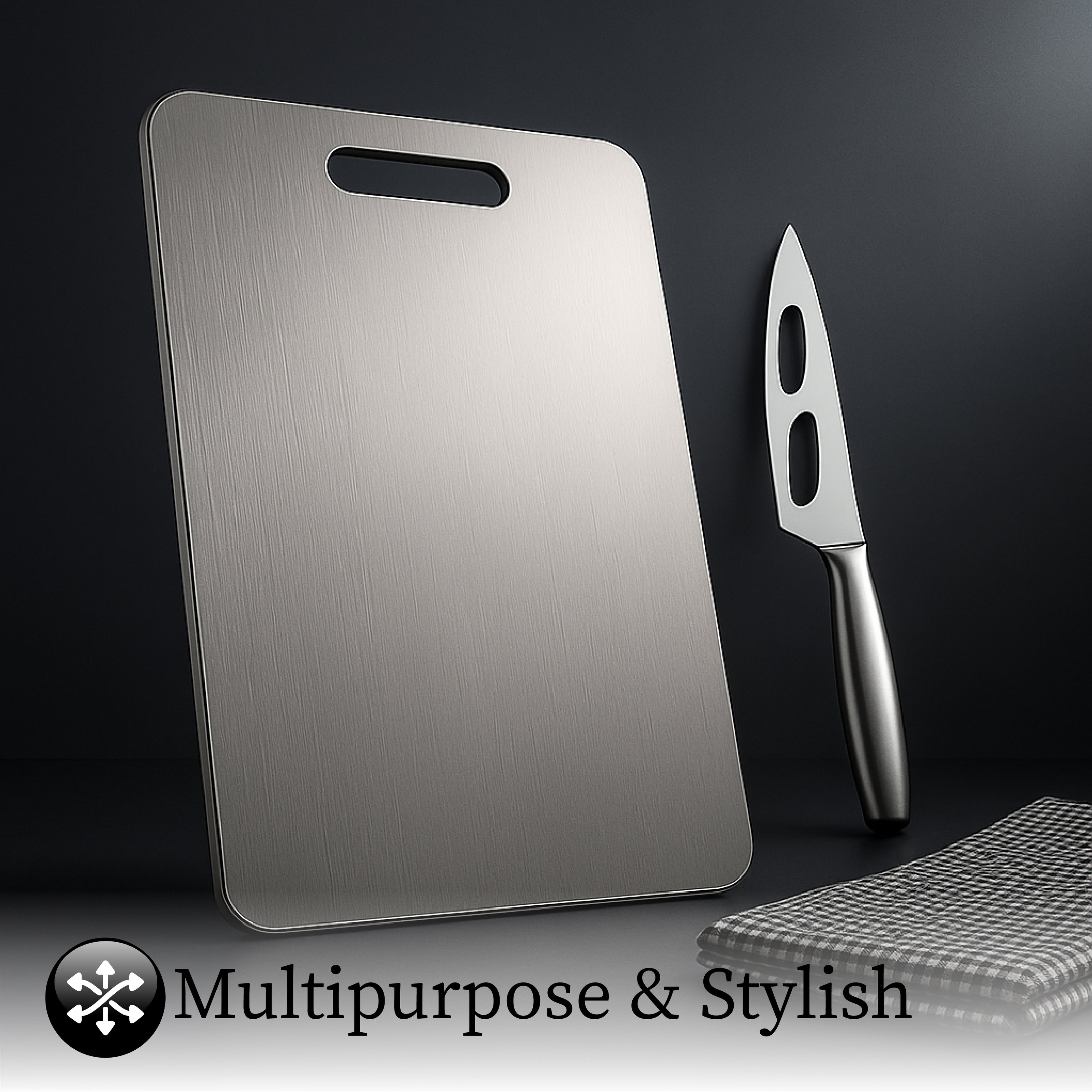 From juicy steaks to citrus fruits, herbs to pastry dough — this titanium cutting board handles it all with precision, hygiene, and style.